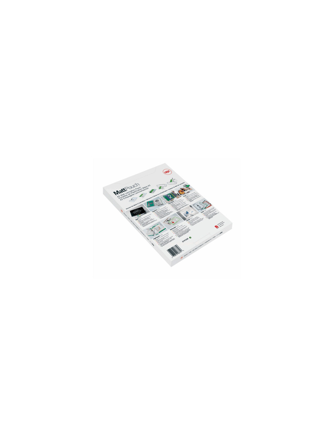Beskytter dokumenter, der bruges ofte, med et hårdført, mat laminat, der klæber på begge sider af papiret. Minimerer reflekser og muligt at skrive på laminatet. 75 micron mat. A4 format