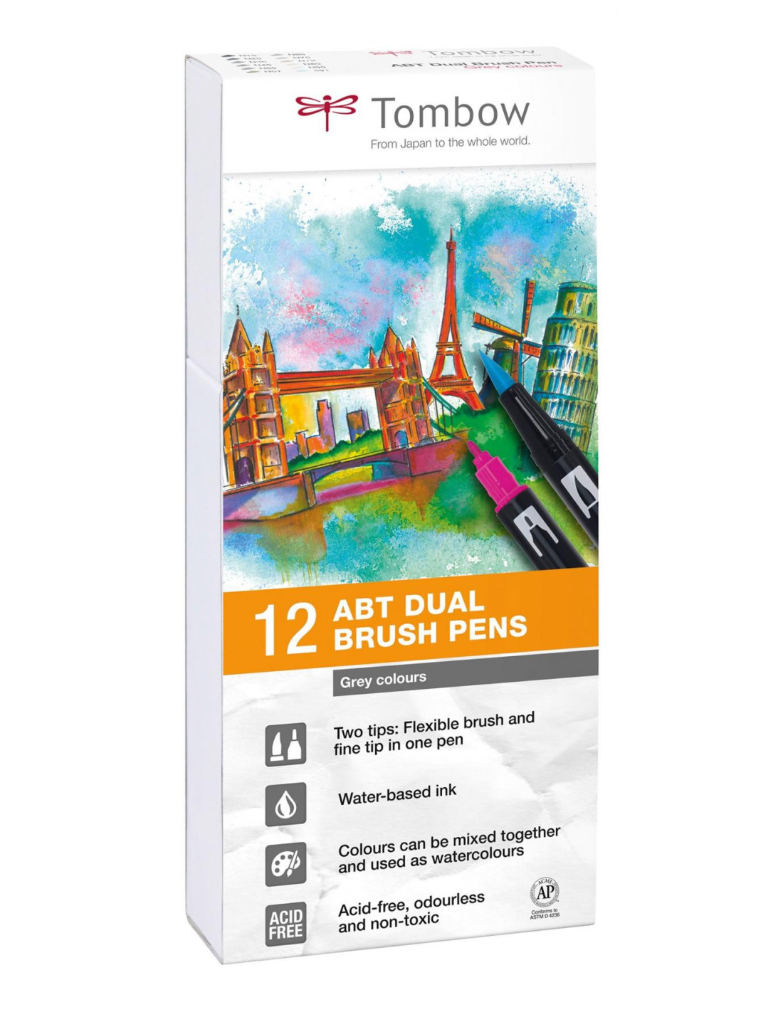en fin spids til at tegne præcise streger og en bredere pensel spids. Farverne kan blandes og bruges som vandfarver. Velegnede til lykønskningskort, illustrationer m.m. Duft og syre fri. Ikke lysægte. Sættet består af følgende farver: N15 black, N25 lamp black, N35 cool grey12, N45 cool grey10, N55 cool grey7, N57 cool grey5, N65 cool grey5, N75 cool grey3, N79 warm grey2, N89 warm grey1, N95 cool grey1, 491 glacier blue