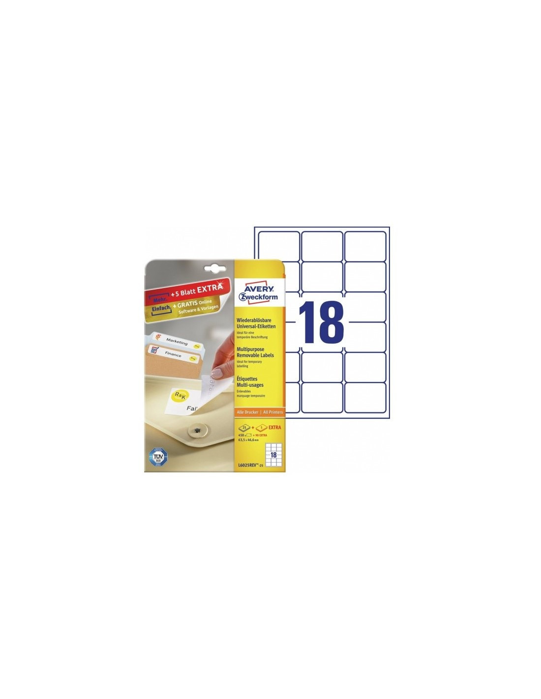 Avery Varenummer L6025REV-25Ideelle til midlertidig mærkning. Etiketterne klæber godt og kan nemt fjernes igen uden at efterlade limrester. De er velegnede til at ændre oversigten over indholdet af dine dokumenter, mapper og ringbind eller som midlertidige noter og instruktioner. De er desuden FSC certificerede og produceres derfor kun af papir fra bæredygtig skovdrift.