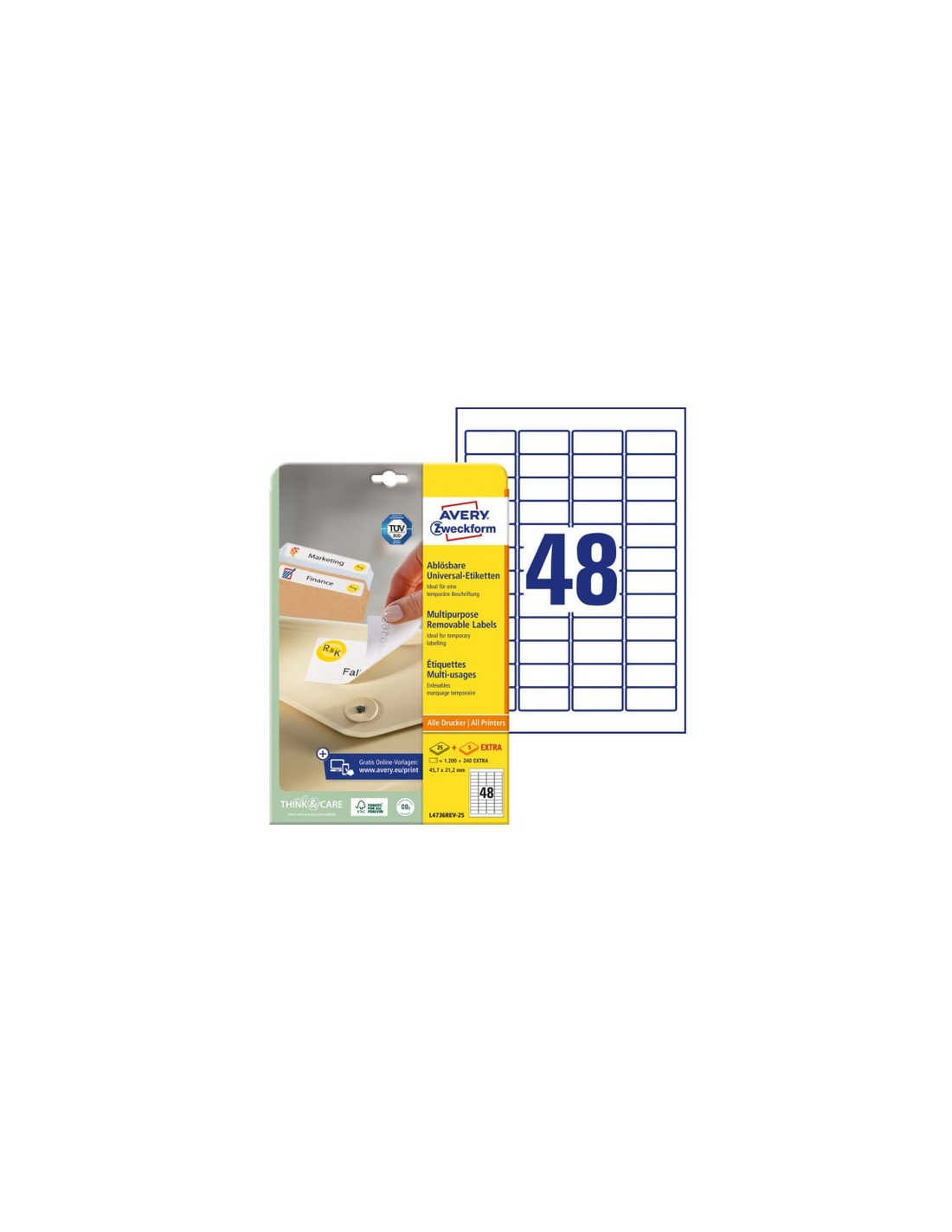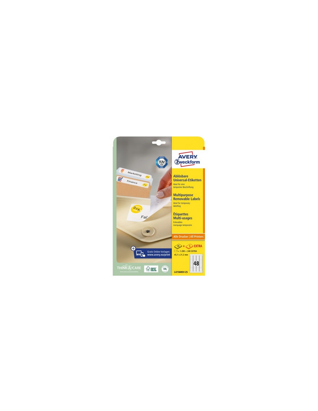 Avery Varenummer L4736Rev-25Ideelle til midlertidig mærkning. Etiketterne klæber godt og kan nemt fjernes igen uden at efterlade limrester. De er velegnede til at ændre oversigten over indholdet af dine dokumenter, mapper og ringbind eller som midlertidige noter og instruktioner. De er desuden FSC certificerede og produceres derfor kun af papir fra bæredygtig skovdrift.