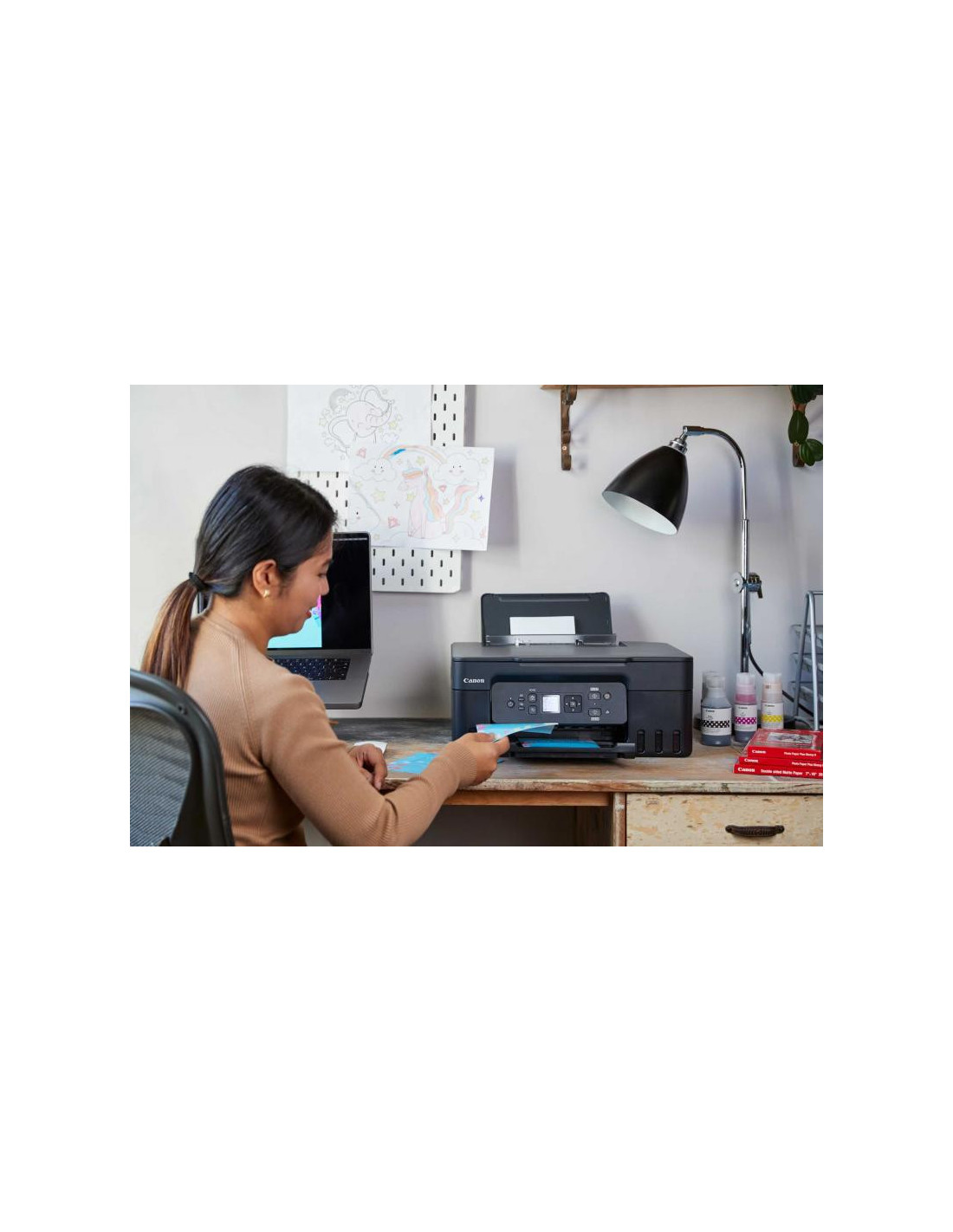 Print, kopier og scan dokumenter derhjemme, og opnå samtidig kæmpe besparelser med denne hurtige, prisbillige og effektive MegaTank-printer med Wi-Fi. Med genopfyldelige tanke og et enkelt sæt blækflasker, der leverer op til 8.100 print1, er driftsomkostningerne forfriskende lave sammenlignet med patronbaserøde printere.