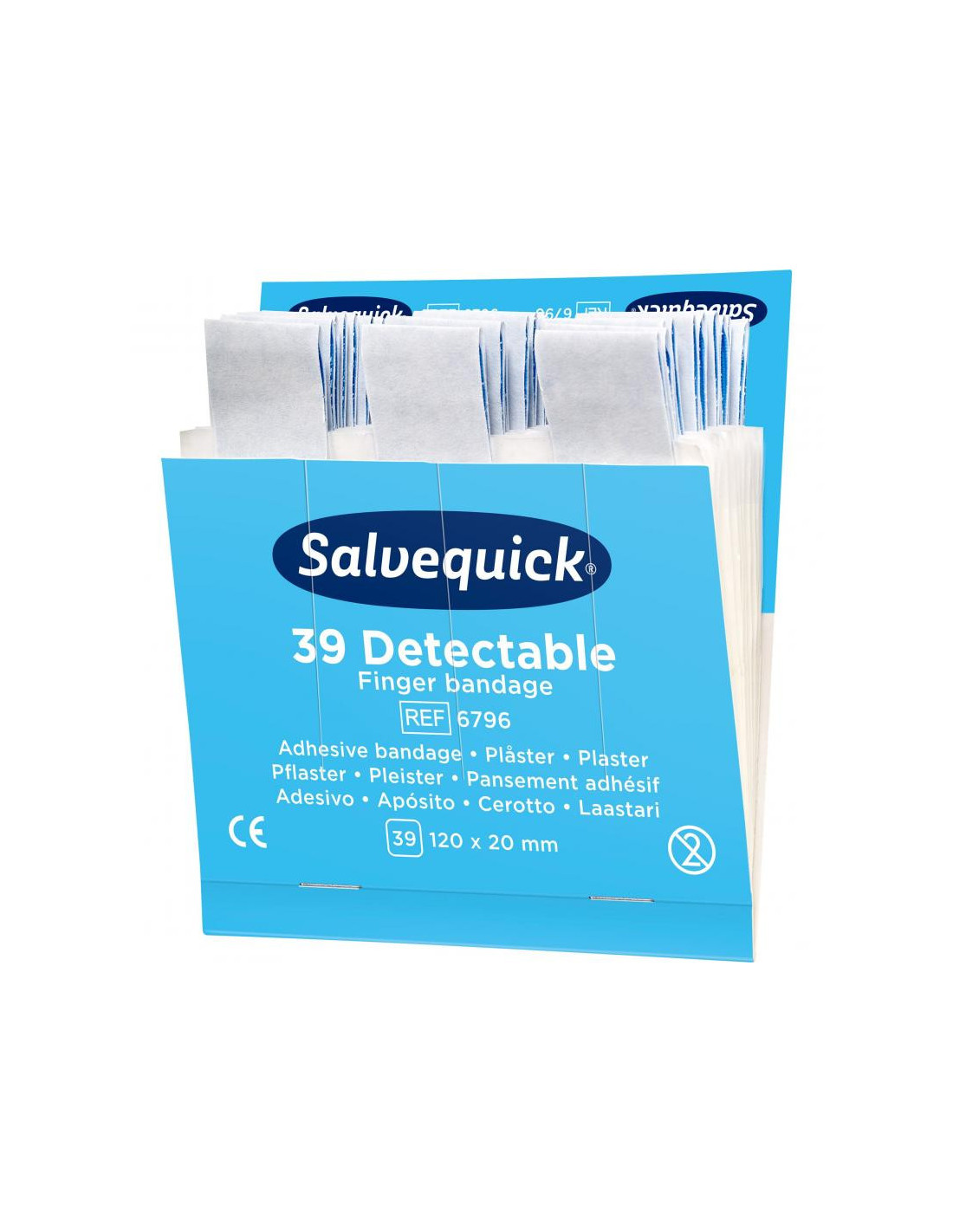 Blå Sporbare Extra Lange Fingerplastre Salvequick blå plastre er specielt fremstillet til brug indenfor fødevareindustrien