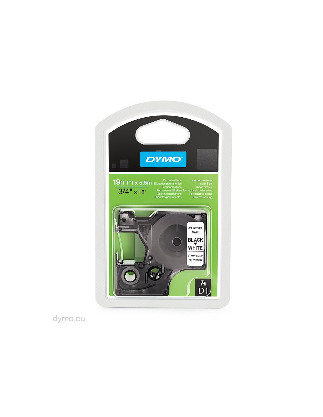 Originalt DYMO 16960 D1-tape permanent polyster SORT/HVID