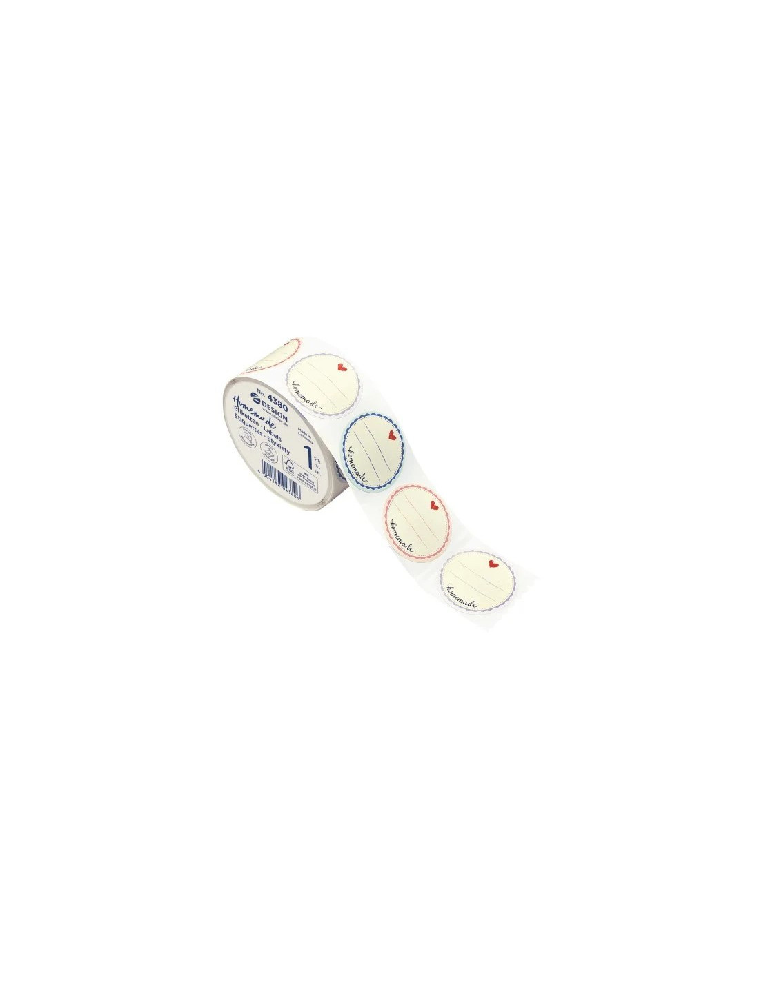 For at sikre, at syltetøjsglasset ser lige så godt ud som indholdet, skal du blot sætte vores smukke håndskrevne etiketter på dine hjemmelavede delikatesser. Du kan altså ikke kun give dine marmelader væk privat til familie, gode venner, naboer eller arbejdskolleger, men også markedsføre dem kommercielt, hvis du vil sælge hjemmelavede produkter på markeder og i gårdbutikker. De runde ""Hjemmelavede"" etiketter er naturligvis ikke kun perfekte til syltetøj og marmelade, men til alt hjemmelavet såsom saucer, dips, olier, kiks, likører, sirup, krydderier og meget mere. Etiketterne klæber pålideligt, men kan fjernes igen efter brug - så marmeladeglassene er genanvendelige. Storpakke til sæsonens mange syltetøj og marmelader: De 600 trykte ""Hjemmelavede"" syltetøjsetiketter i høj kvalitet leveres på en rulle. Hver rulle indeholder tre skiftende designs - alle med to linier til at skrive på. De pålideligt klæbende klistermærker er ideelle til privat brug, men også til kommerciel brug. Det runde format med en diameter på 38 mm er perfekt skræddersyet til glas, dåser og små flasker.