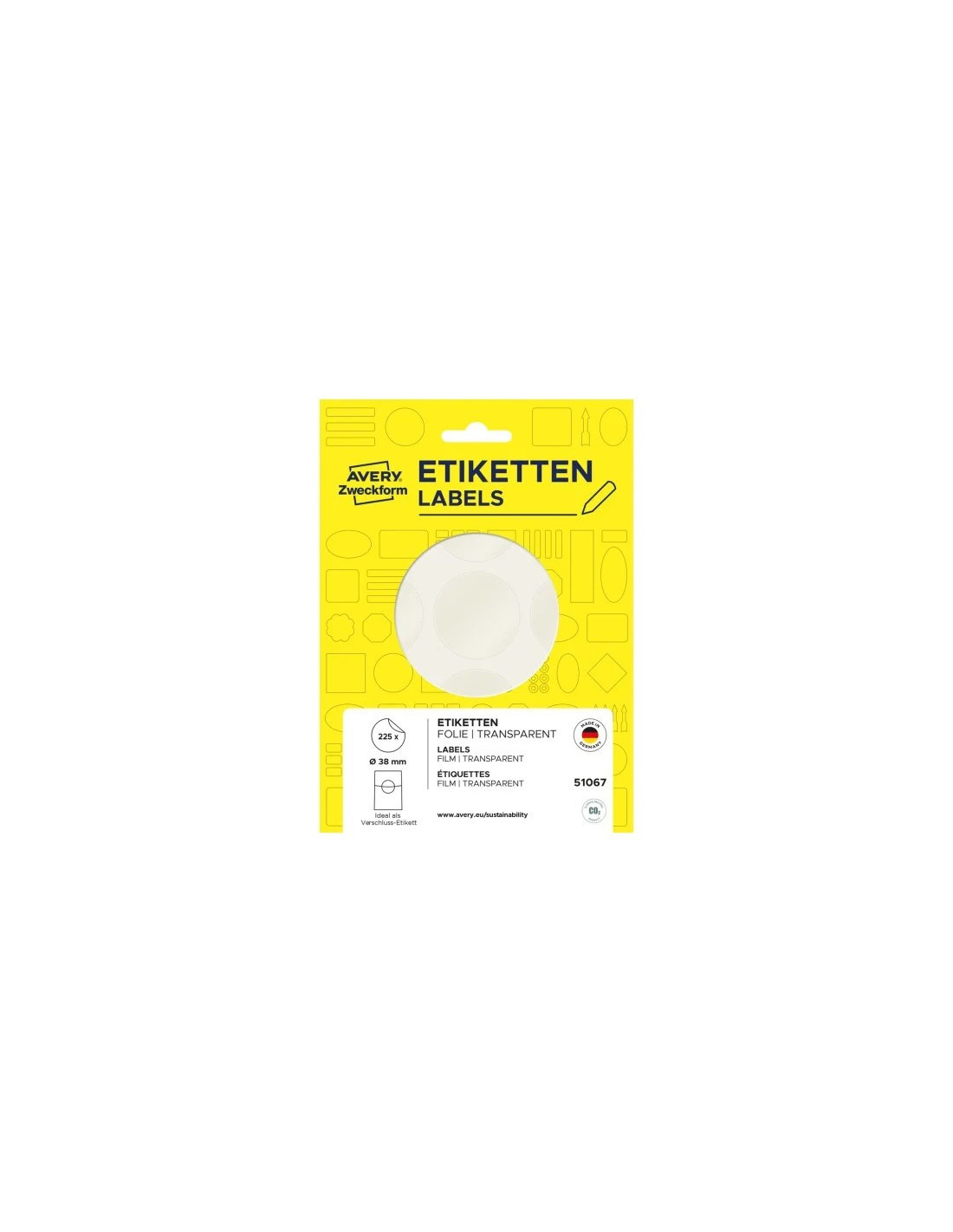 Transparente, permanent klæbende forseglingetiketter 51067 i rundt format med en diameter på 38 mm fra Avery