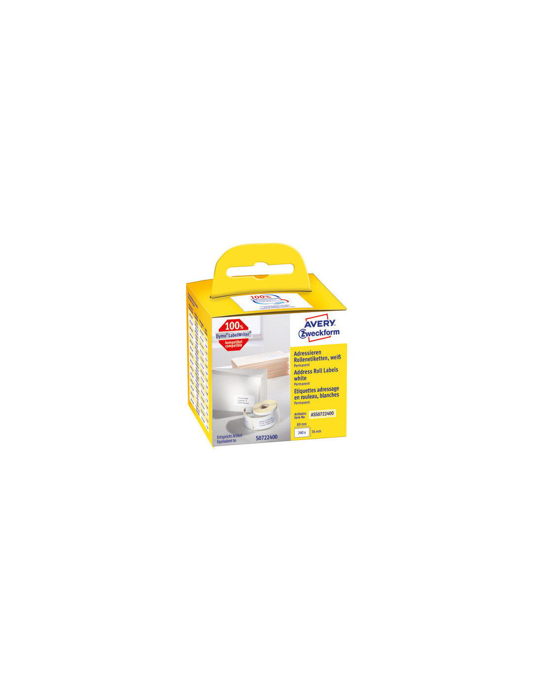 Avery Labelrulle, Addresse, 89x36mm, ASS0722400, 260stk