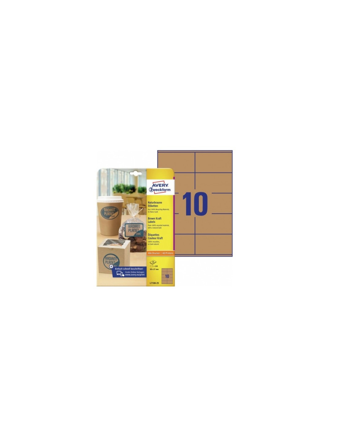 Perfekt som produkt etiket Giver dine produkter et moderne naturligt look Miljøvenlige, fremstillet af 100% genbrugsmateriale Design og print nemt med GRATIS skabelonerGiv dine produkter et moderne naturlook med Avery's L7108-25 naturbrune etiketter med 10 etiketter/ark og 250 etiketter/pakke, de er miljøvenlige og fremstillet af 100% genbrugsmateriale.