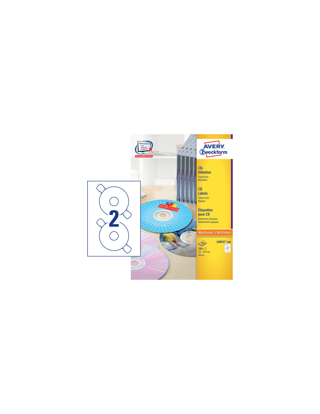 Avery Varenummer L6043-100Avery's CD etiketter giver dine brændte CD´er et professionelt udseende og giver dig et hurtigt overblik over data, billeder, musik osv. Full Face etiketterne dækker helt ind til hullet på CD skiven, og giver dermed mere plads til tekst og billeder, mens Classic Size CD etiketterne giver dine CD´er et mere klassisk udseende. Matchende CD omslag kan let designes og printes særskilt.