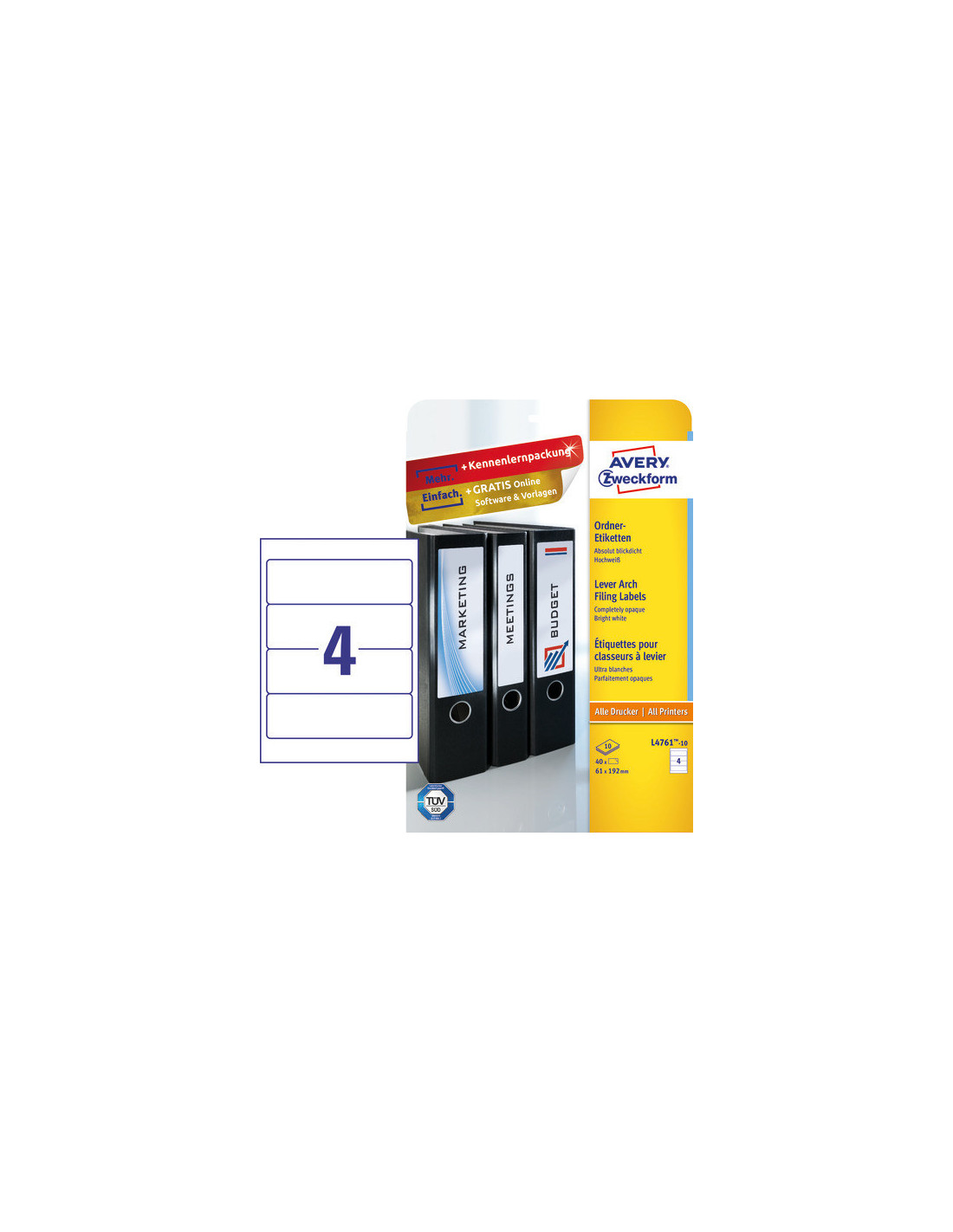 Pakken indeholder 10ark, i alt 40 etiketter Spar penge ved at genanvende gamle mapper, bokse og ringbind Til mærkning af dine ringbind Klæber permanent på ringbindets ryg FSC certificerede Design og print nemt med GRATIS skabeloner