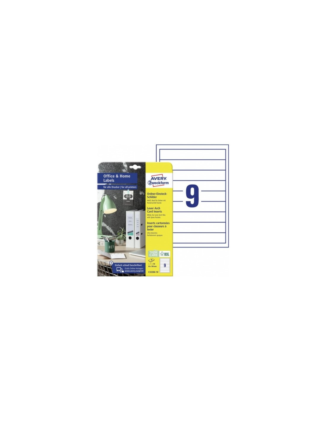 Avery's C32266-10 er indstik til ringbind, som har et plastlomme på ryggen. Indstikkene er i kraftigt printbart karton. De måler 30 x 190 mm og er ideelle til smalle ringbind. Vi anbefaler, at du måler plastlommen på dit ringbind for at være sikker på, at størrelsen passer til netop dit ringbind. Pakken indeholder 90 indstik.
