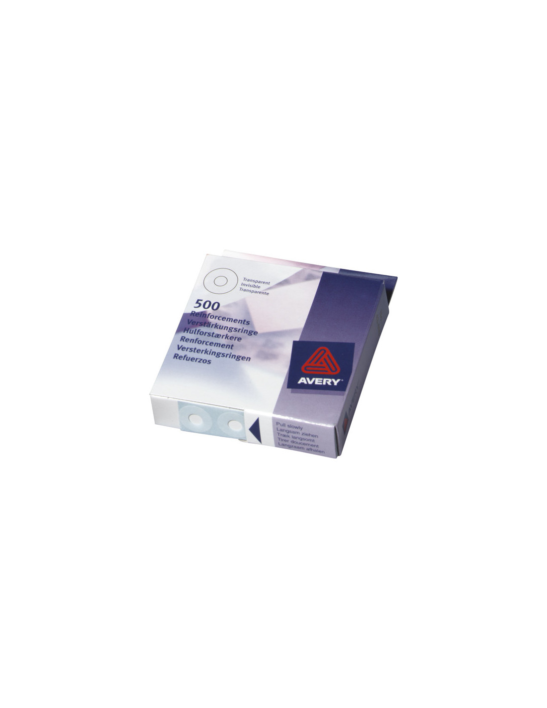 Avery 43-409 Hulforstærkere. Klare 13mm Dispenser 500stk. (Udsalg)