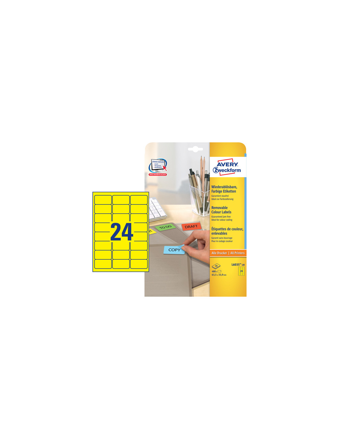Farvede til blæk og laserprinter Avery L6034-20 Aftagelige røde etiketter 24 pr. ark 63,5x33,9 20ark Avery Etiketter 129,00 DKK Farvede etiketter, røde, 63,5 x 33,9 mm Læg i indkøbskurv