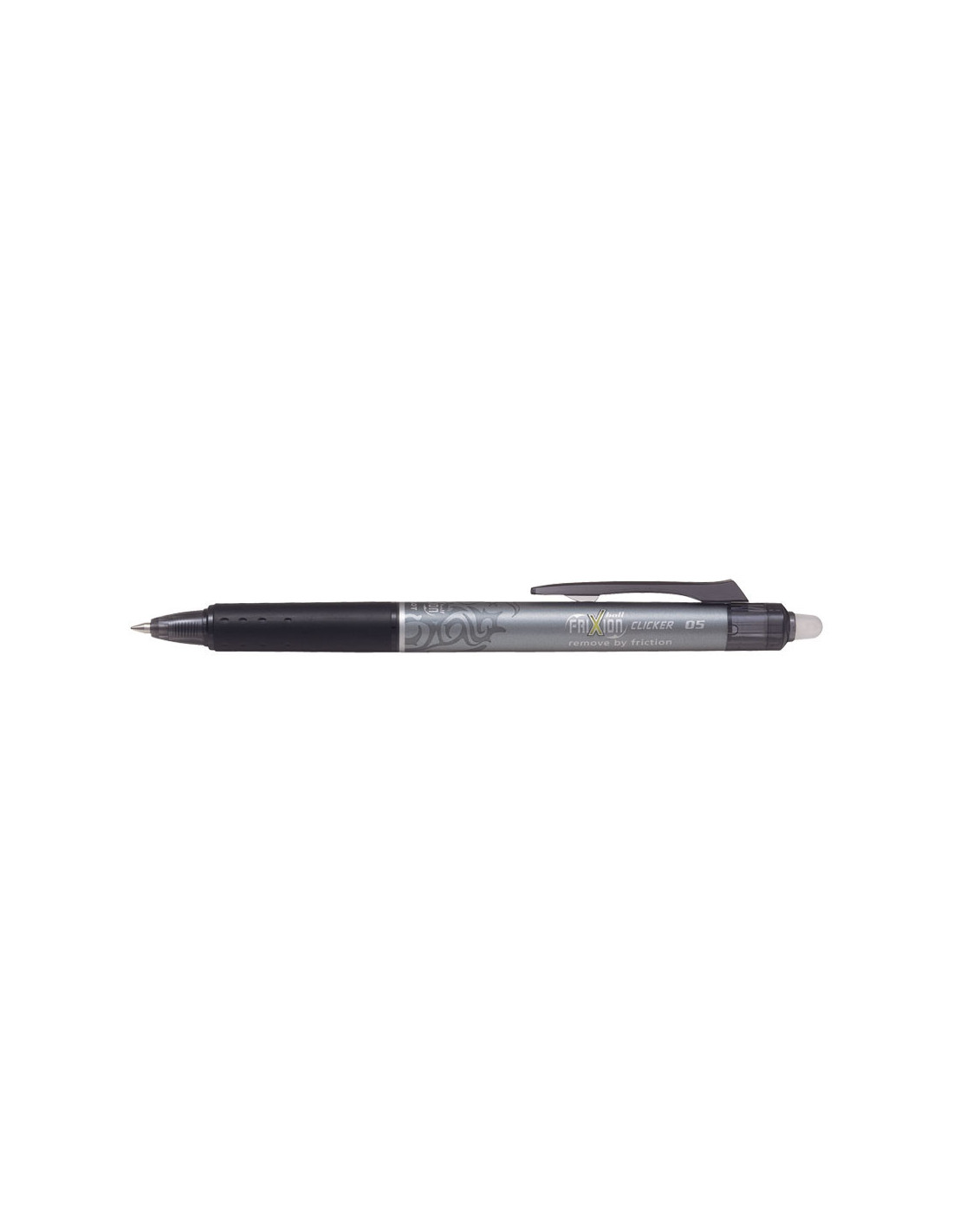 Blækket er varmefølsomt, og forsvinder ved den friktion der opstår, når der gnides på det skrevne. Der kan skrives, slettes og rettes i det uendelige uden at papiret ødelægges. Pennen glider let hen over papiret med en klar og tydelig streg. FriXion Clicker er med klikmekanisme og konisk spids. Fås i et væld af flotte farver. Hylsterfarve: sort Skrivefarve: sort Spids diameter: 0,5mm Pakket á: 12 stk. i æske
