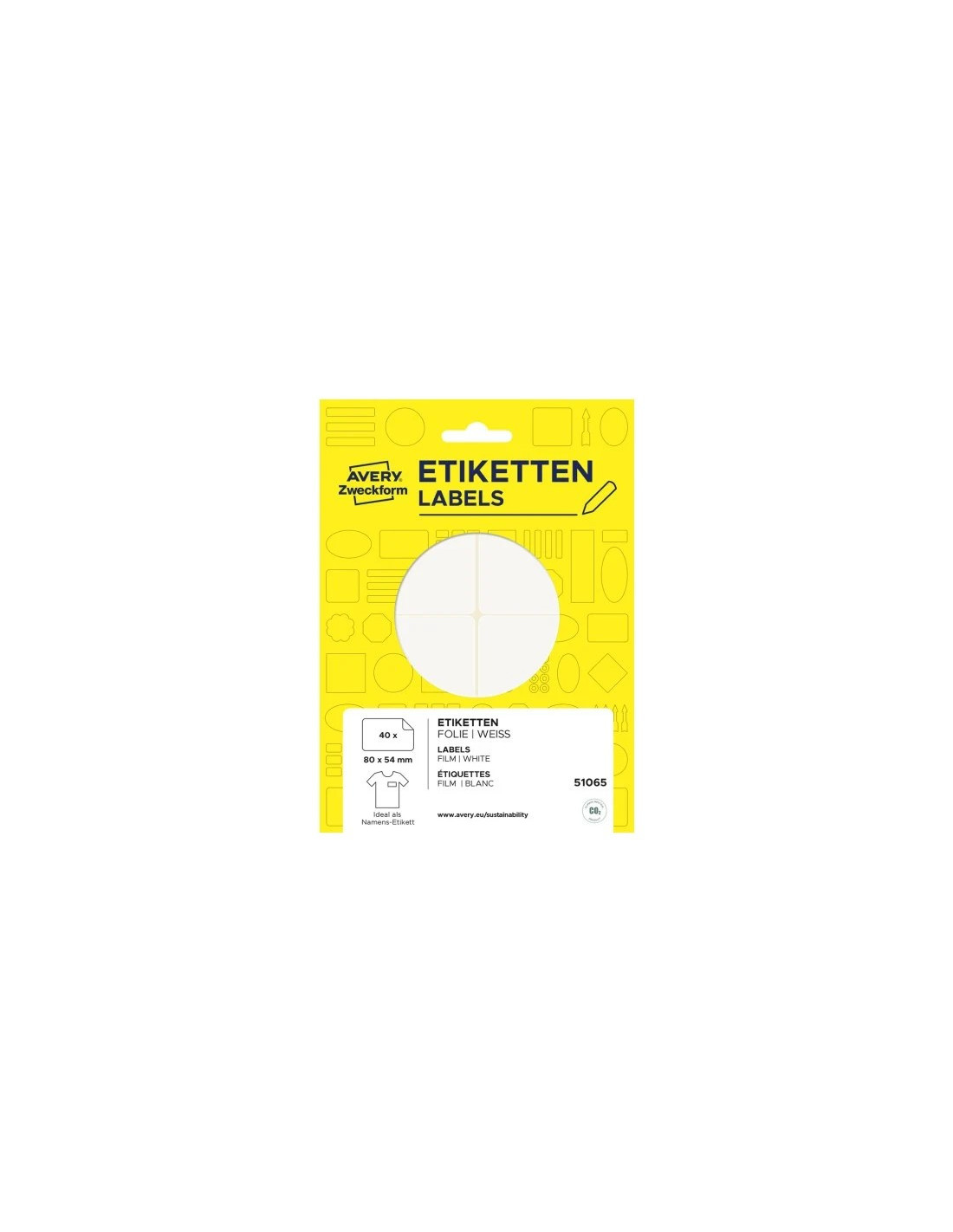 Hvide, aftagelige navneskilte 51065 fra Avery til håndskrift i formatet 80 x 54 mm