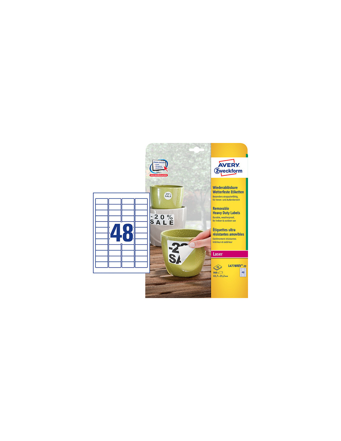 Ekstra holdbare etiketter, Aftagelige Avery L4778REV-20