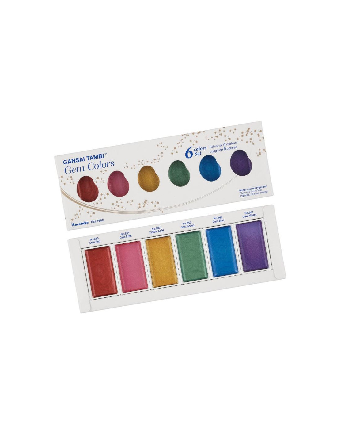 These high-caliber watercolors are blendable with a creamy-smooth feel that show up on dark paper. Solid water colors for professional artists and crafters. Ideal for sketch, illustration, sumi-e and more. The Gem Color set includes 6 rich metalic colors.