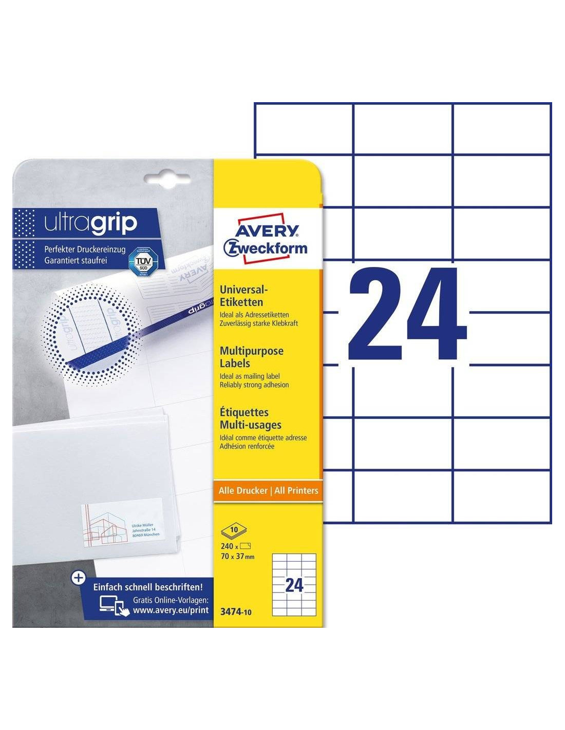 Universal etiketter der kan bruges i alle printere og kopimaskiner 10-arks prøvepakke til specialpris Garanteret jamfrit, til alle almindelige printere og kopimaskiner Problemfrit gennemløb i blæk og laserprinter Skarp klar udskrift uden sløring
