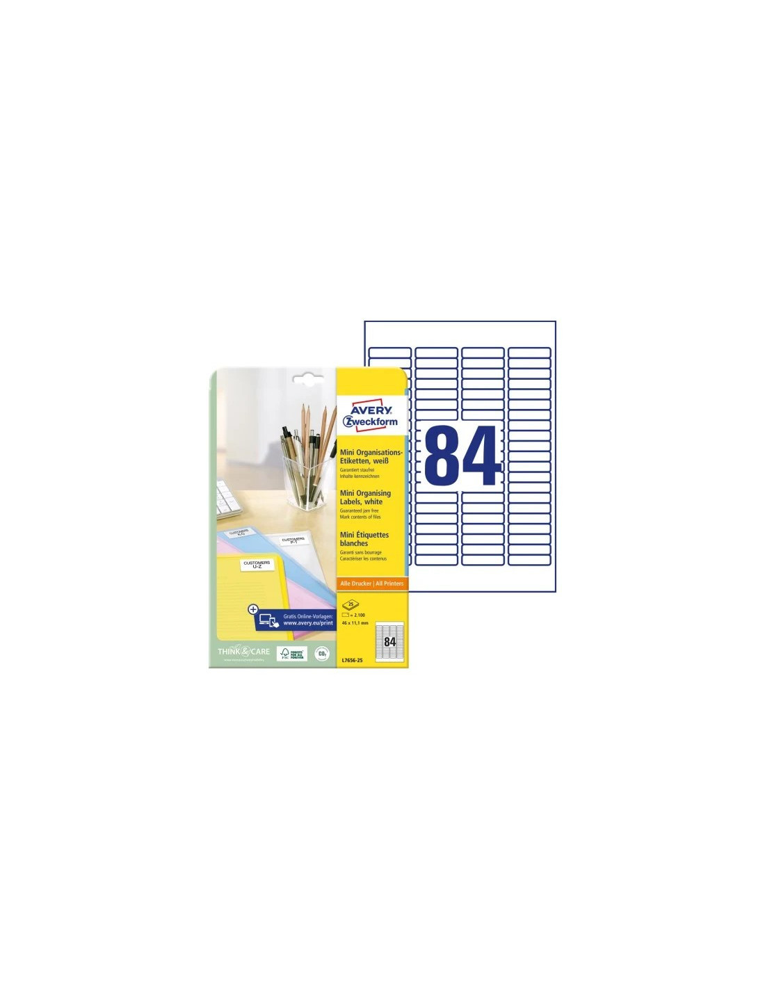 Avery's L7656-25 hvide mini-etiketter 46 x 11,1 mm til laser og inkjet printer med 84 etiketter/ark og 2100 etiketter/pk