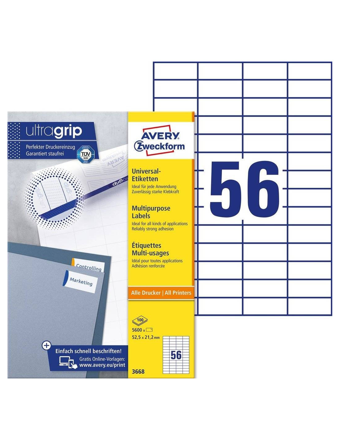 Ultragrip Universal etiketter, hvide, 52,5 x 21,2 mm - 3668