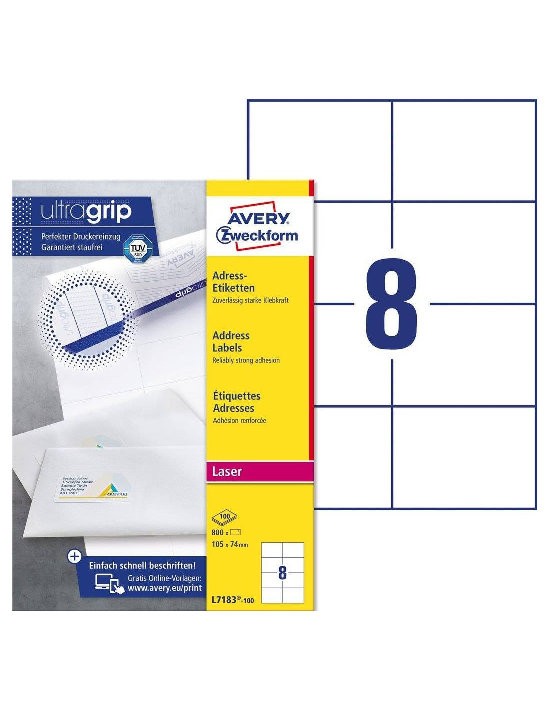 Avery Varenummer L7183-100Ultragrip sørger for præcis udskrivning uden papirstop