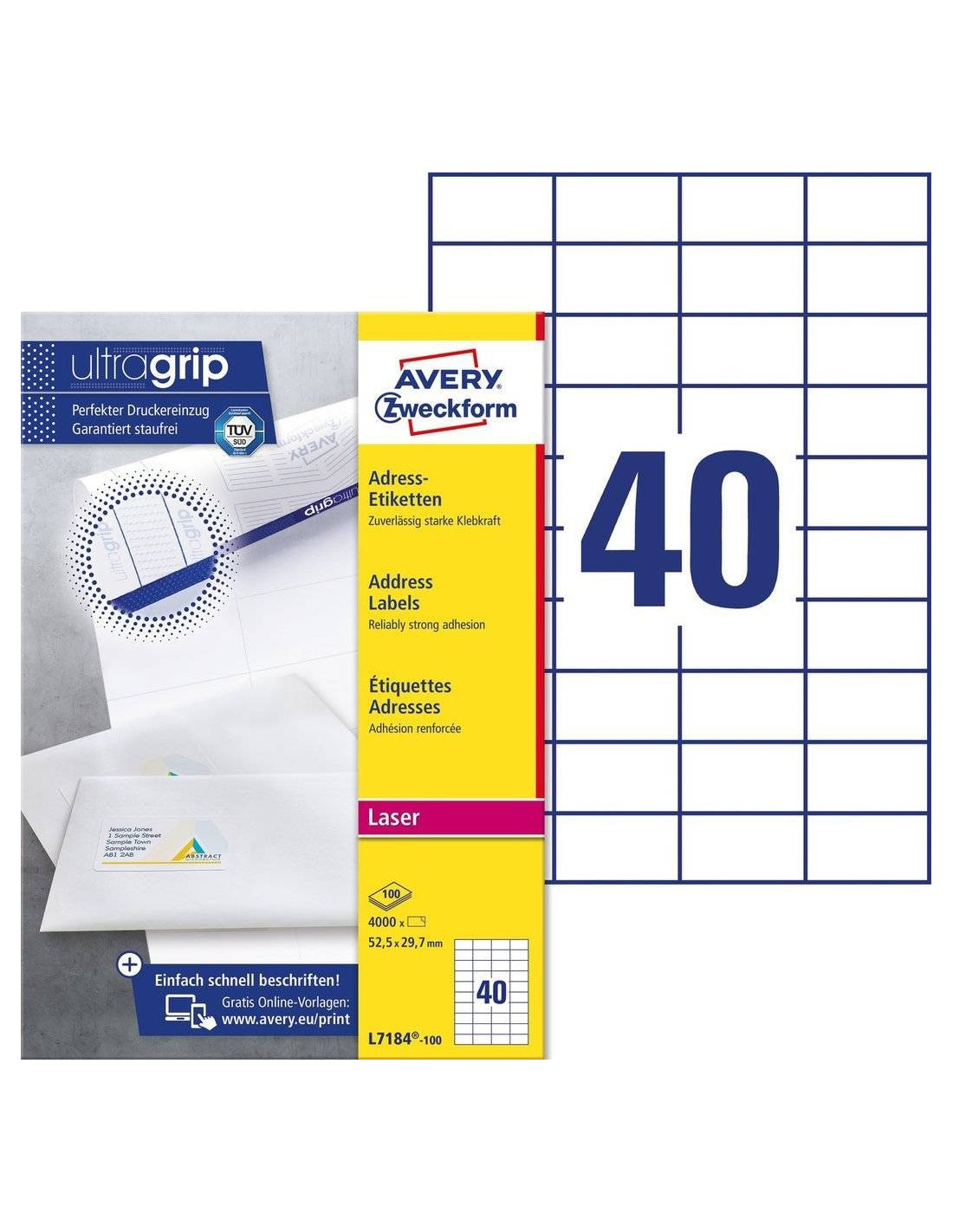 Avery Varenummer L7184-100Ultragrip sørger for præcis udskrivning uden papirstop