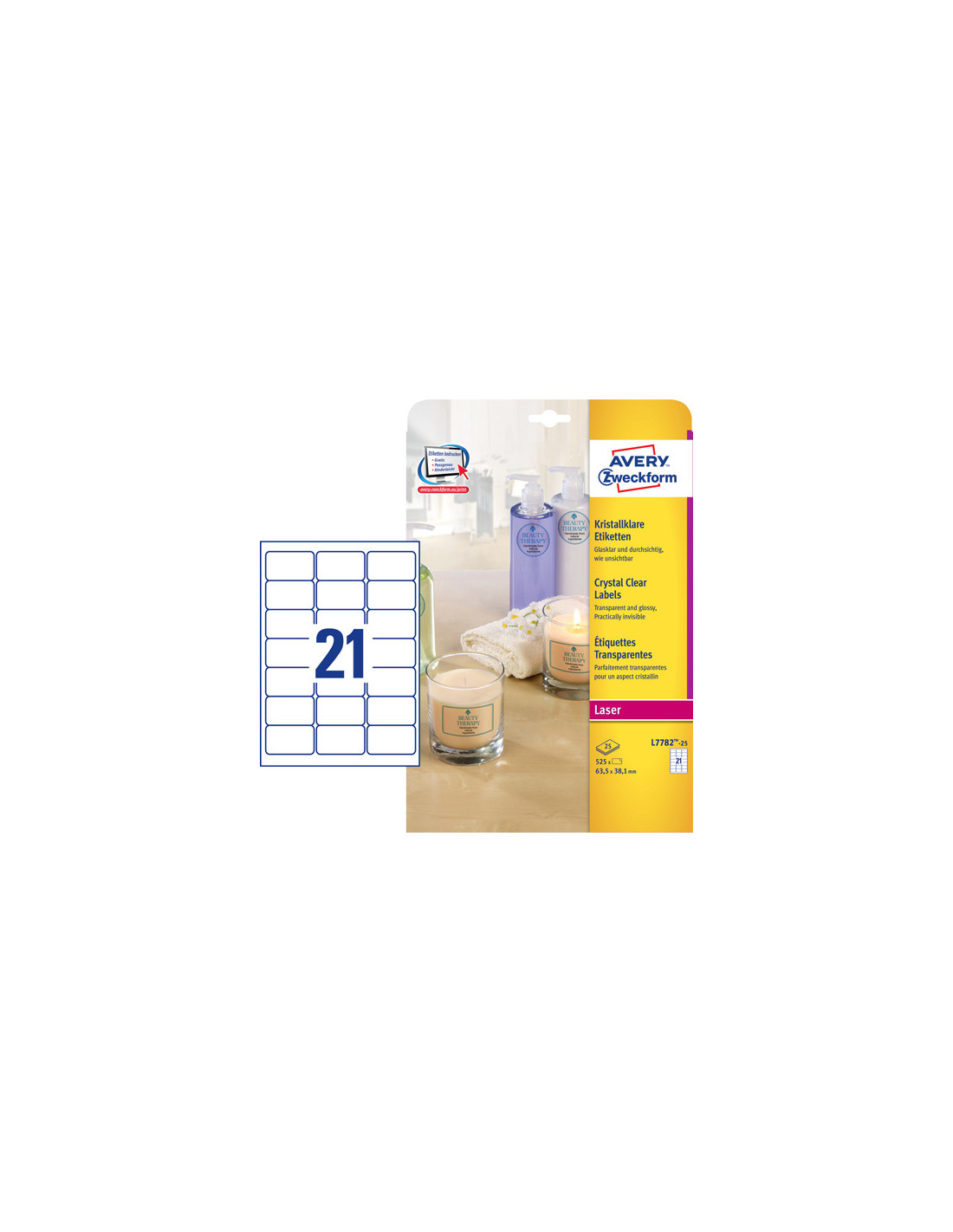 Avery L7782-25 Crystal klare etiketter 21 pr. ark 63,5 x 38,1 25 ark