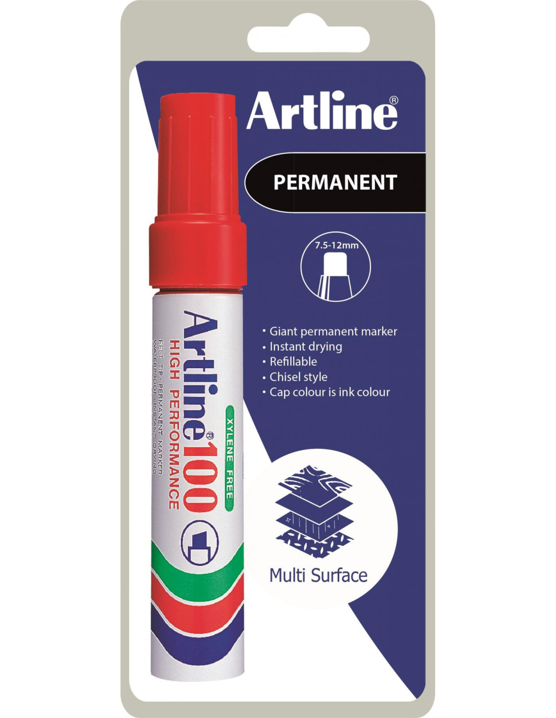 Marker 100 rød 1-Blister, Artline EK-100-C1 red, 6stk