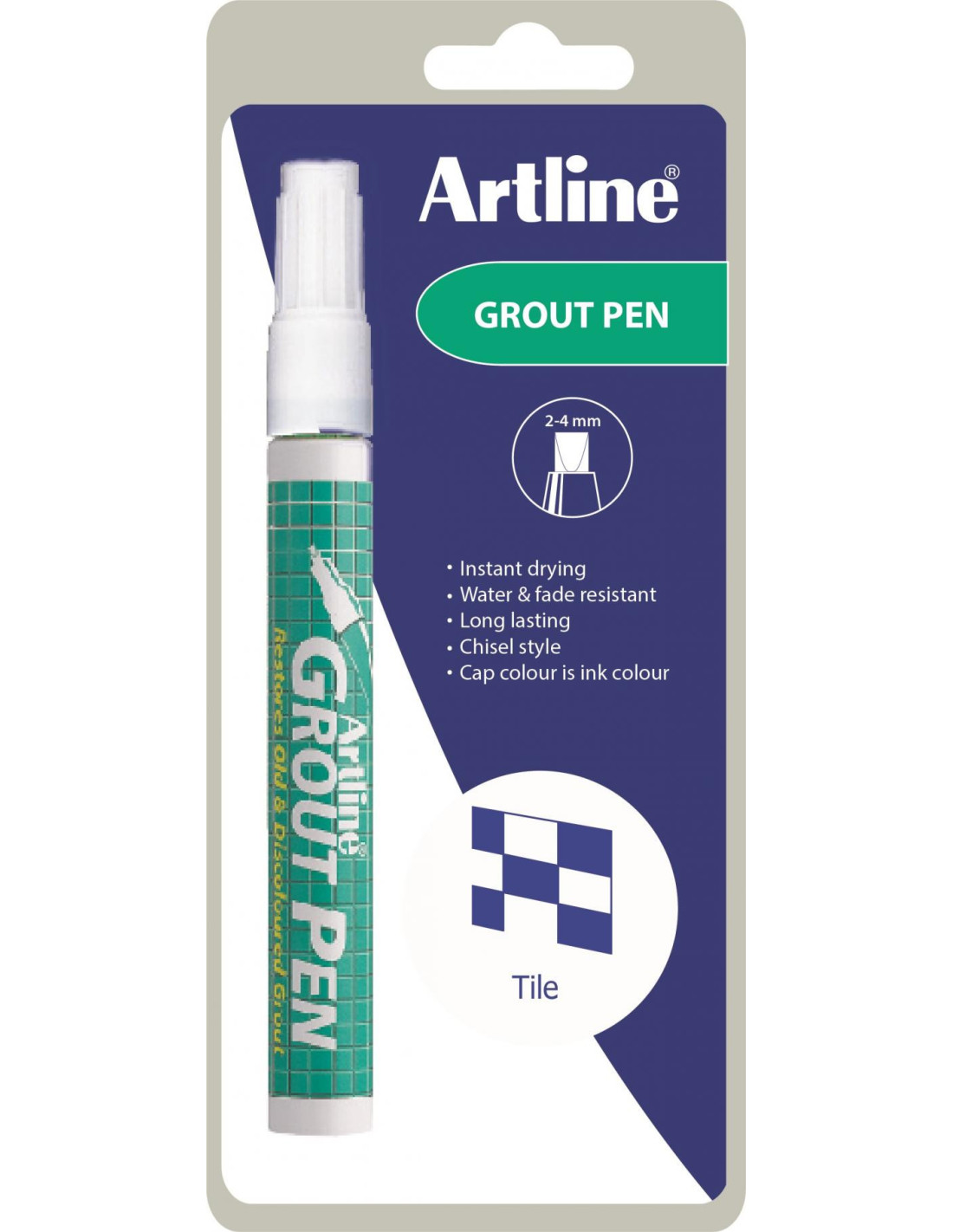 Markers Grout pen til fuger Marker 419 Grout Pen 1-Blister, Artline EK-419-C1 Hvid Artline Kontorartikler 59,00 DKK Marker med 2-4 mm chisel spids til gips- eller flisefuger i badeværelse eller køkken Læg i indkøbskurv