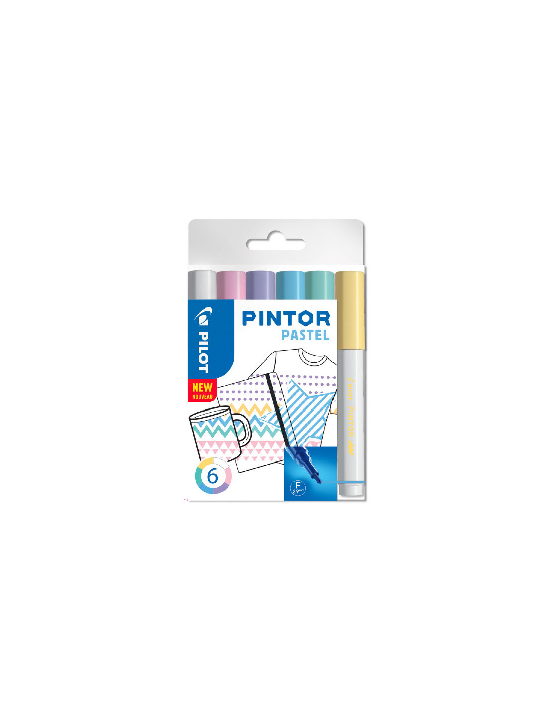 Vil du give dit tøj et nyt look, personliggøre et objekt eller dine møbler, eller dekorere porcelæn? Pilot Pintor gør alle dine ideer mulige, på alle materialer. Perfekt til tegning, farvelægning, dekoration, mærkning, skrivning, kalligrafi og meget mere. Fås i flere sjove farver og to spidsbredder: Fin (2,9 mm) og Medium (4,5 mm)Ultra-dækkende blækPigmentrig vandbaseret blækMulti-overfladeFarver som kan blandes og give uendelige nuancerFås i to spidsbredder (F og M)Blækket bliver permanent, hvis du stryger stoffet. 6 x Pakke med 6 assorteret farver: blå, gul, lilla, grøn, pink og hvid