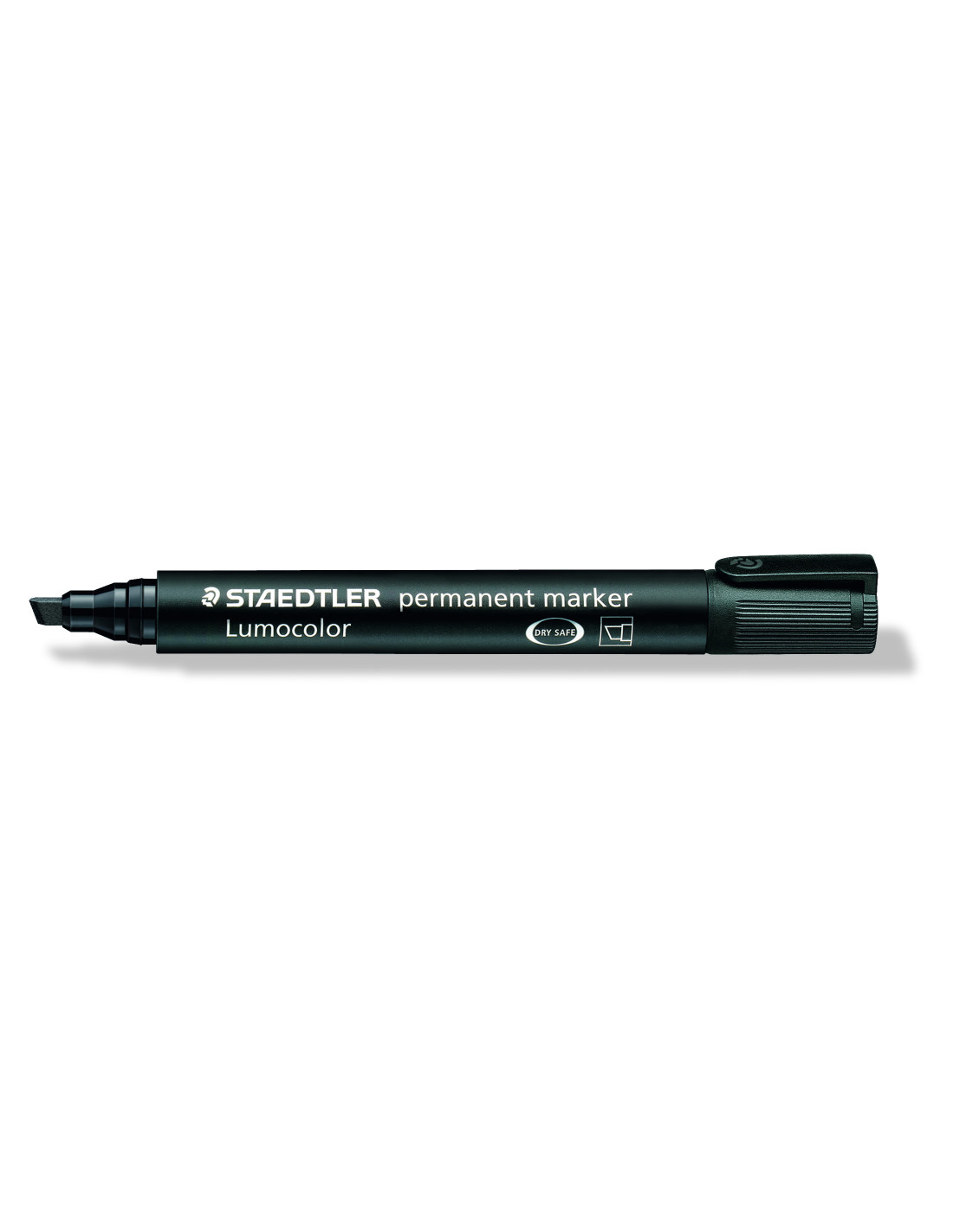 Skrå spids ca. 2-5mm. Smudsafvisende og vandfast og kan anvendes til mærkning og skrivning på stort set alle overflader så som metal, træ, plast, læder, karton. Tørrer på få sekunder, derfor ideel til venstrehåndede brugere. Farve intensiv. Lysægte. PP skaft og hætte sikrer lang levetid. Indeholder DRY SAFE blæk som gør den kan ligge uden hætte i dagevis uden at tørre ind. Genopfyldelig. Sort. Made in Germany