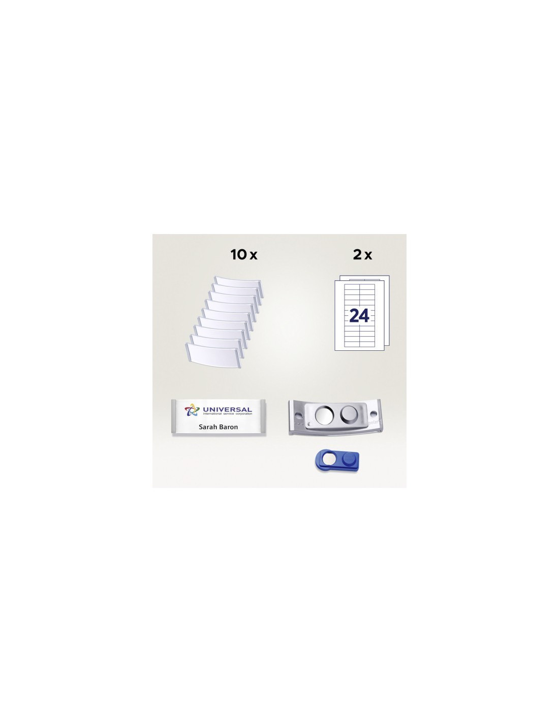 Medarbejderskiltene er ideelle til personale, som ekspederer, betjener, behandler, byder gæster og besøgende velkommen i f.eks. hotelreceptioner, restauranter, butikker, på konferencer og i sundhedssektoren. Sættet indeholder 10 skilte med patenteret smag® magnet for nem og sikker vedhæftning på tøjet. Transparent skiltepanel i ridsefast akrylglas og Quick&Clean indstikskort med helt skarpe kanter.