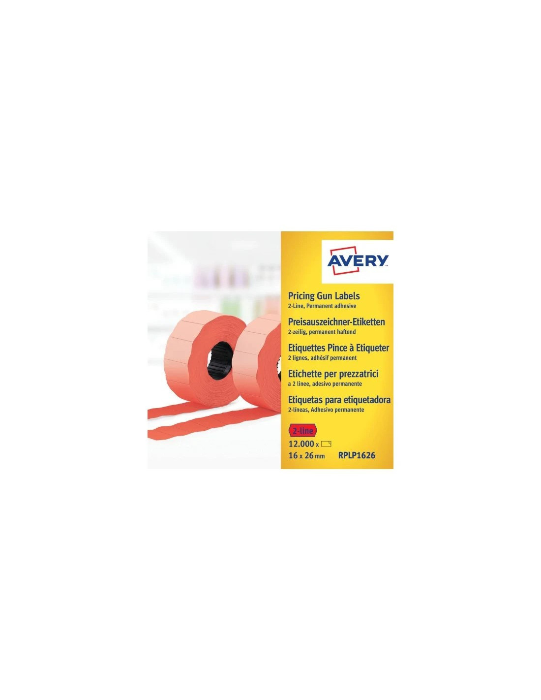 Avery RPLP1626 Rød Prisetiket 2 linier, op til 18 cifre, Permanente, 1200 pr. rulle 26x16 mm (10stk.)