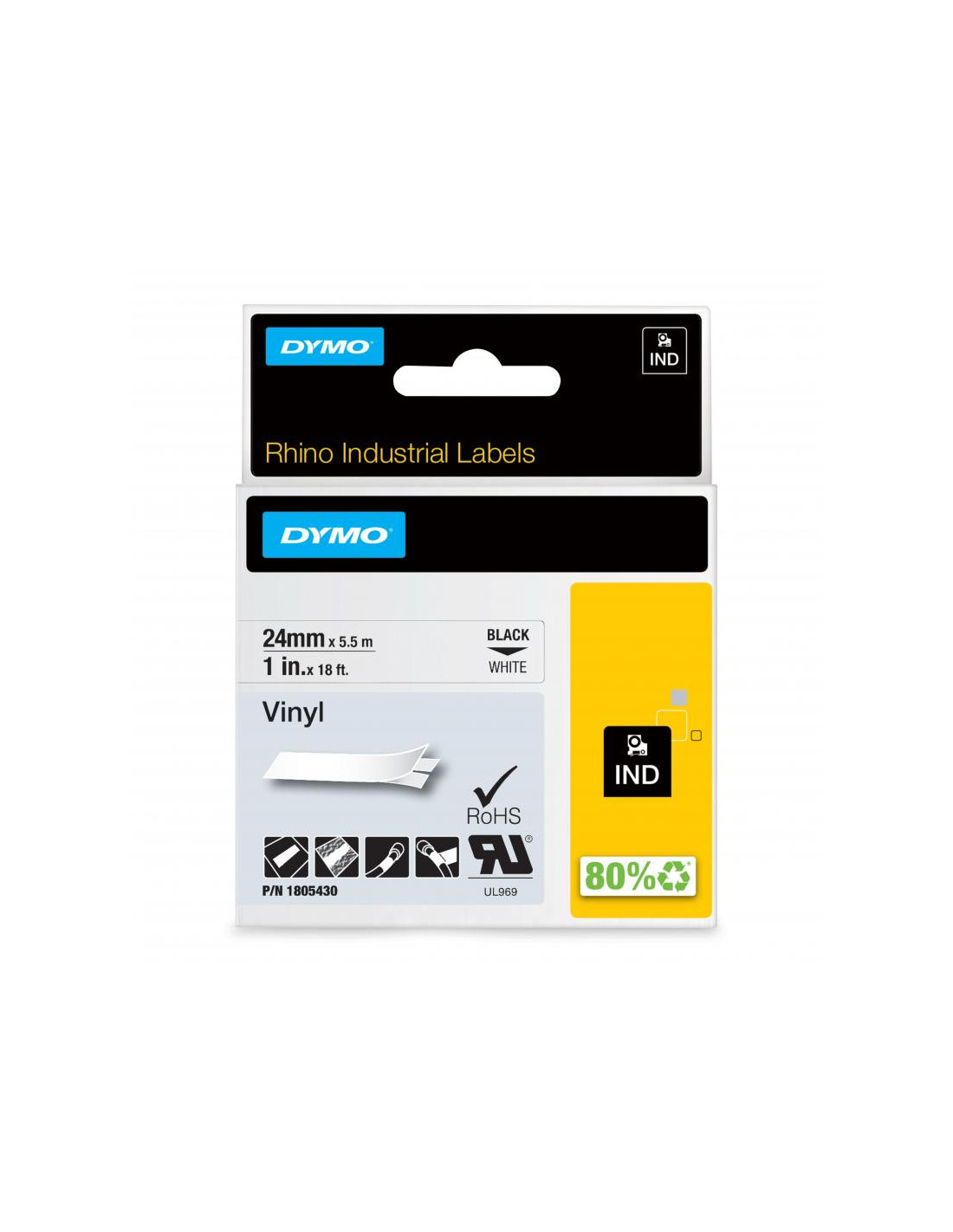 Rhino tape 24 mm x 5.5m coloured vinyl (sort på hvid), DYMO 1805430