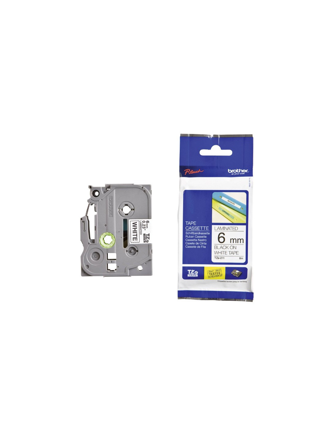 TZ211, TZ-211, TZe211 Sort tekst på hvid tape 6mm Brother (8m. pr. rulle)