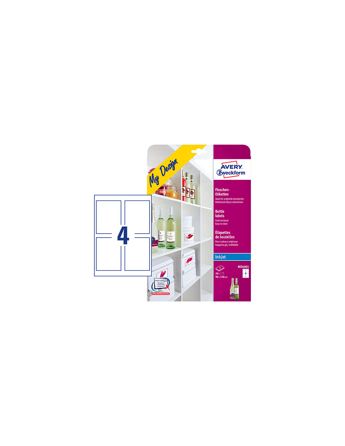 Avery Varenummer MD4001INDesign og print dine helt personlige flaskeetiketter til f.eks jubilaren eller bryllupsfesten.