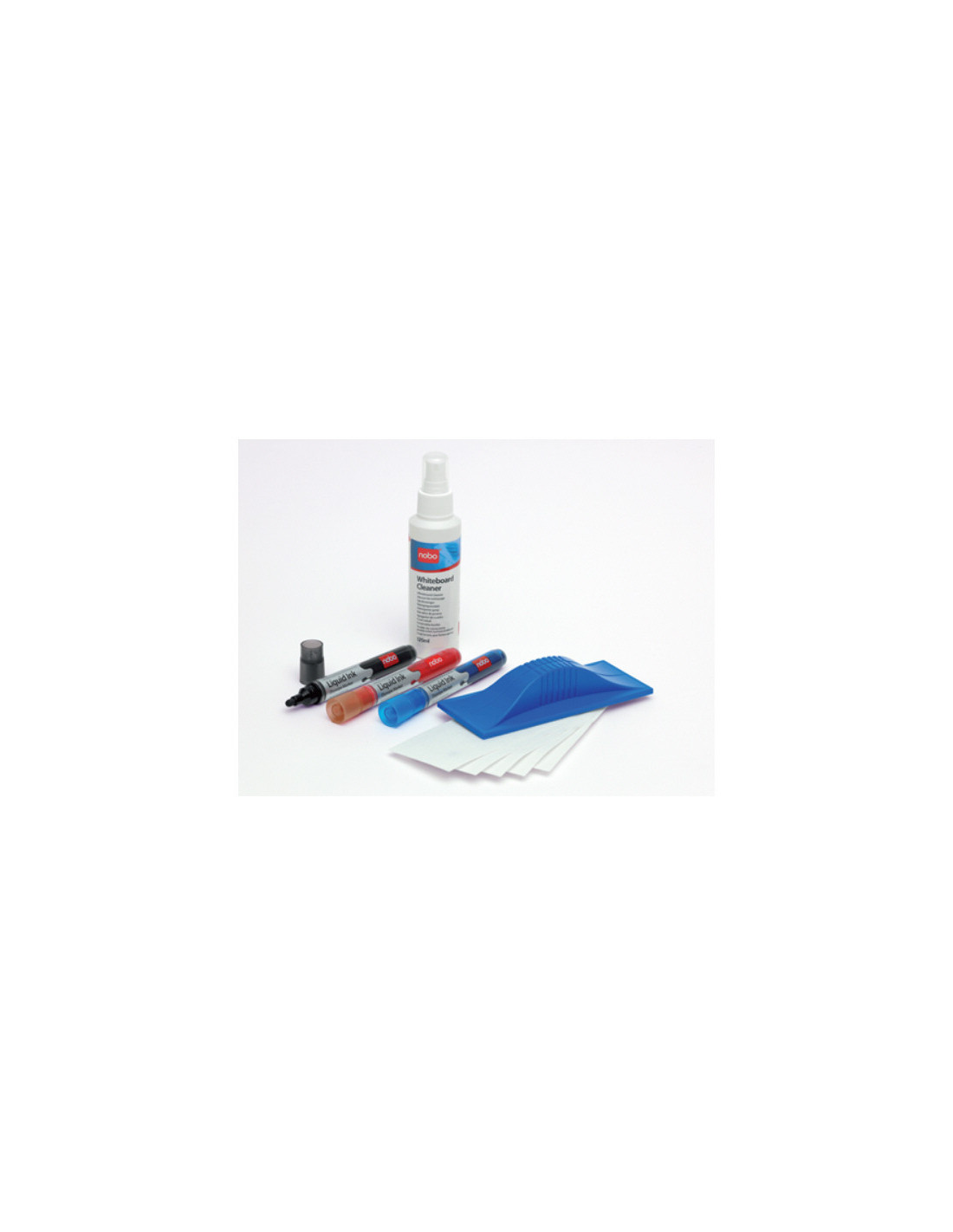 Nobo whiteboard startersætter vil hjælpe med at holde enhver whiteboardtavle i konferencerum, og den indeholder 3 svag lugt dry-erase markere (sort, rød og blå), 1 tavlevisker, 5 tavlevisker refiller og 125ml rensespray.