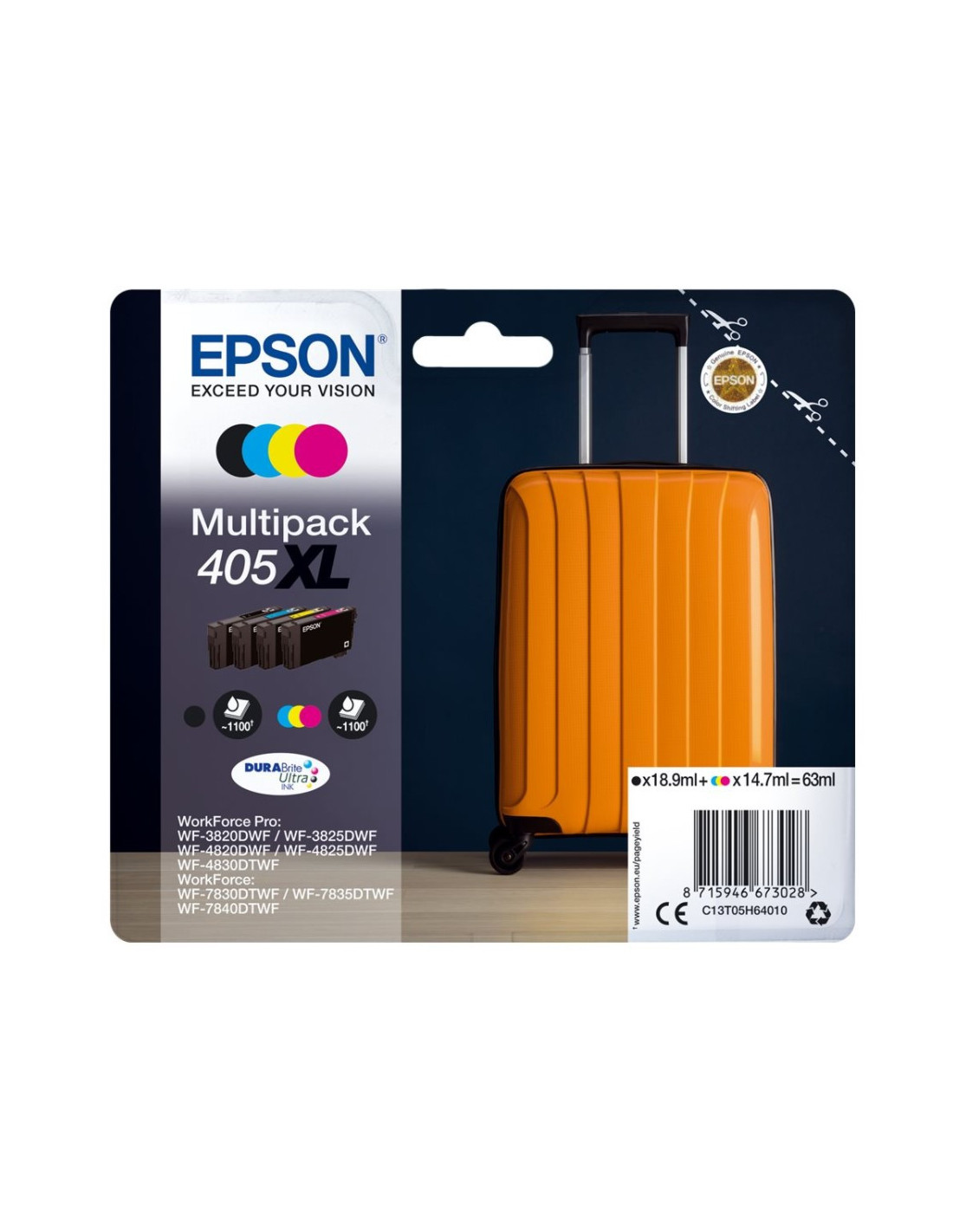 Workforce WF-3820DWF T405 Cyan XL blæk kassette, Epson C13T05H24010 Epson Blækpatroner 279,00 DKK T405 Cyan XL Ink 14,7 ml Læg i indkøbskurv