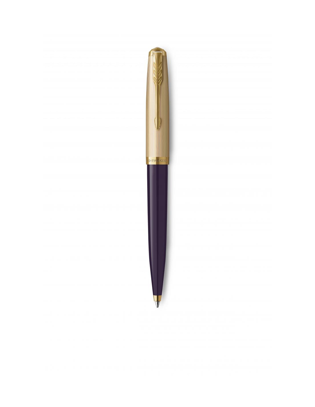 Parker 51 er en moderne version af det originale ikon, der engang blev hyldet som 'verdens mest ønskede', første gang lanceret i 1941 Holdbar, blank blommefarvet ædelharpiks hylster og hætte i rustfrit stål med guldfinish og den karakteristiske Parker-pilklemme Med en unik hætte beklædt med 18 karat solid guldspids, der leverer en skriveoplevelse, der er både pålidelig og personlig En karakteristisk strømlinet silhuet med en sømløs overgang fra hylster til spids, drager fordel af Parkers ekspertise for overlegent håndværk En unik, men sofistikeret gave, din Parker 51 kuglepen præsenteres i en førsteklasses Parker gaveæske med en lang sort QUINK blækpatron