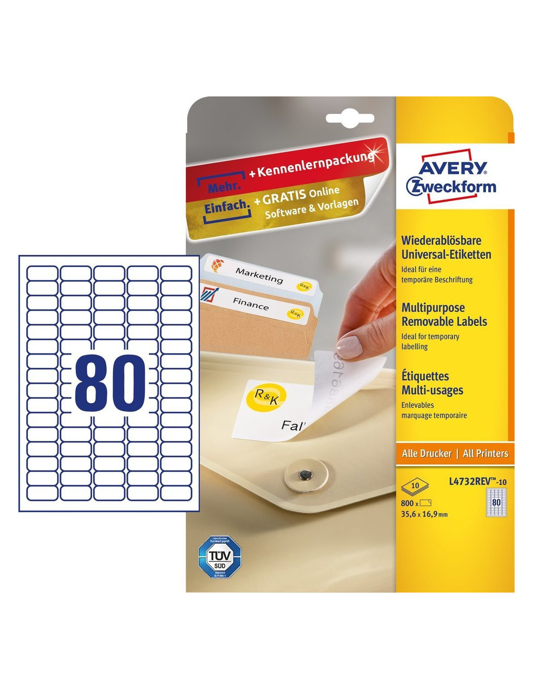 Aftagelige, kan fjernes uden at efterlade limrester Til midlertidig mærkning på dokumenter, mapper og ringbind Jam Free garanti og en enestående papir- og printkvalitet FSC certificerede Design og print nemt med GRATIS skabeloner