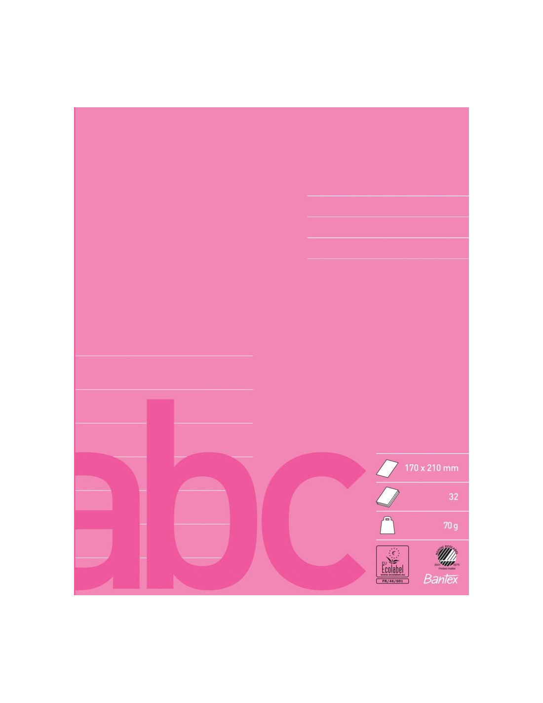 Skolehæfte 17x21 7 linjer 32 blade pink, Bantex 100051993, 20stk