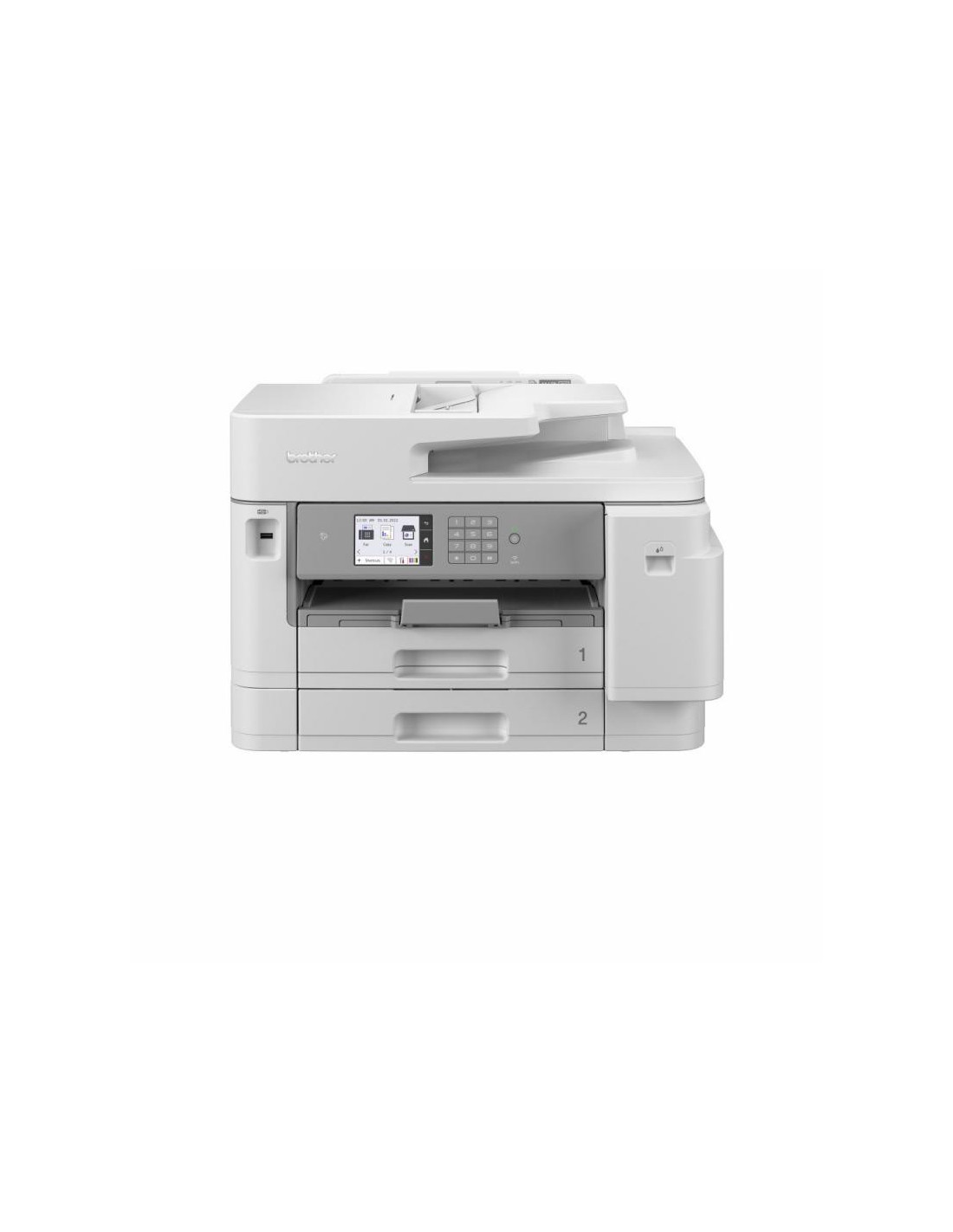 Ideel til kontorer, der har brug for en stabil alt-i-n-printer, der leverer dokumenter i høj kvalitet. Printhastighed op til 30 ipm Automatisk dobbeltsidet A4-print, -scan, -kopi og -fax 8,8 cm farvetouchscreen Kablet og trådløst netkort 2 x 250-arks papirskuffer 100-arks fleksibel bakke 50-arks dobbeltsidet automatisk dokumentføder i A4 Near Field Communication (NFC) til sikker godkendelse og mobilt print Mulighed for store blækpatroner - op til 6000 sider i sort og 5000 sider i farver