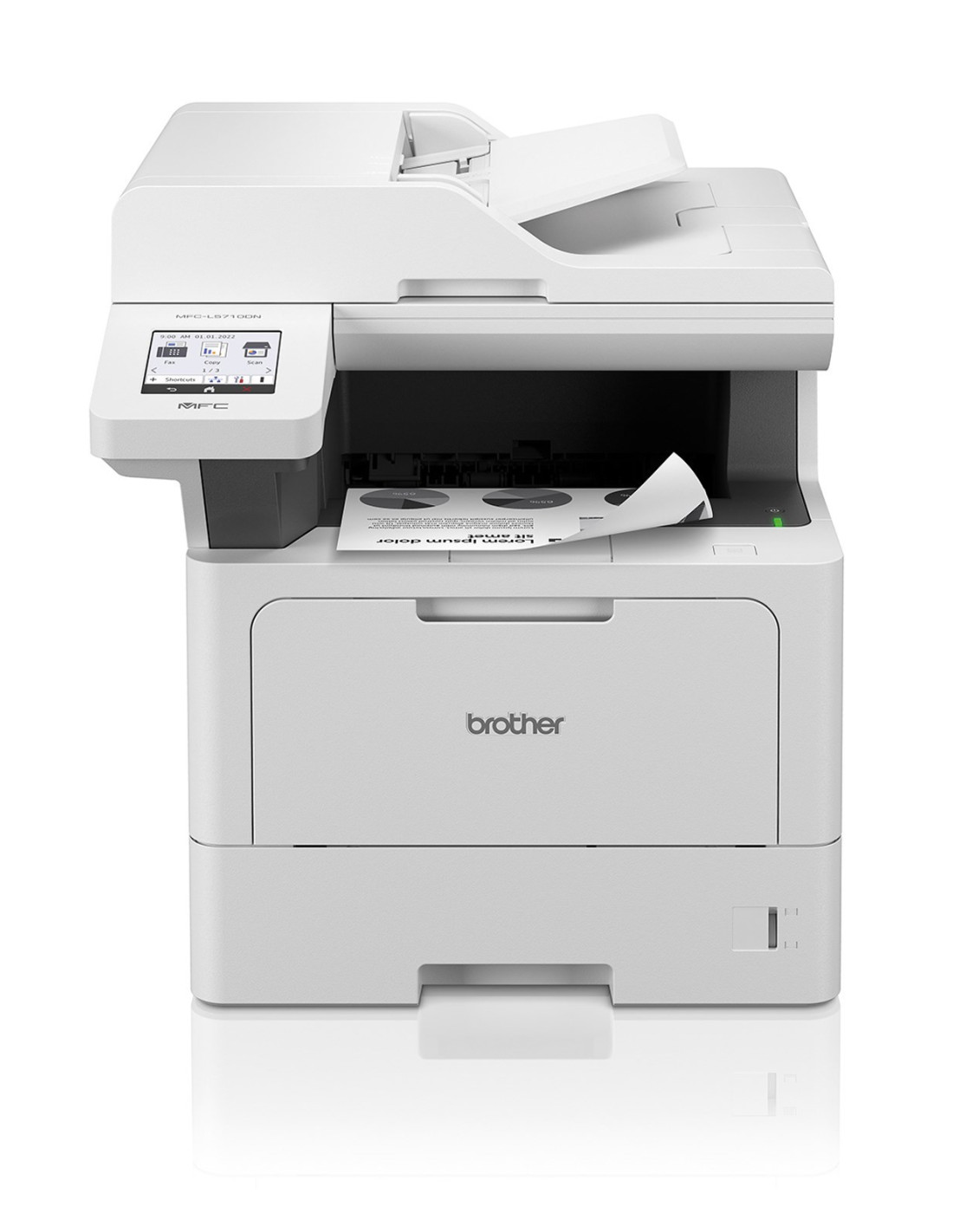 Med fleksible papirhåndteringsmuligheder. Print op til 48 sider/min. Dobbeltsidet print op til 24 sider/min. Dobbeltsidet scan op til 56 billeder i minuttet 50-arks dobbeltsidet automatisk dokumentføder (ADF) 250-arks papirskuffe - papirkapaciteten kan udvides op til i alt 1.290 ark Denne alt-i-en laserprinter er udviklet til virksomheder og til at levere en brugervenlig, professionel oplevelse, som din virksomhed kan stole på. Du får: En 8,9 cm farvetouchscreen Medfølgende toner, der sikrer print af op til 3.000 sider, og mulighed for at bruge en stor toner, som sikrer print af op til 11.000 sider Kompatibilitet med Brother-løsninger samt tredjepartsløsninger, såsom Kofax, YSoft og mange flere Mulighed for en MPS-kontrakt (Managed Print Service)