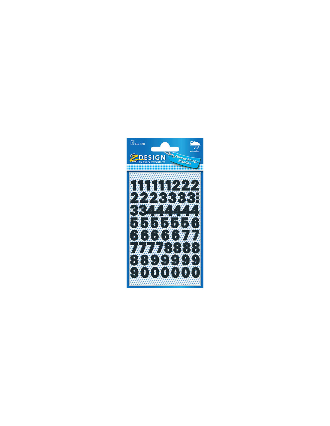 Sorte tal, vejrbestandige, 0-9, 9,5 mm 38 pt, Avery 3781