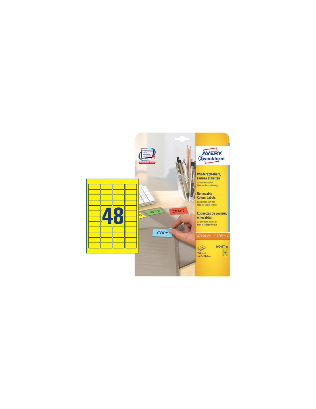 Avery Varenummer L6041-20Gør et ekstra godt indtryk. Farvede etiketter gør dit budskab ekstra synligt. Velegnede til mærkning af dokumenter og mapper samt produkter og emballager.