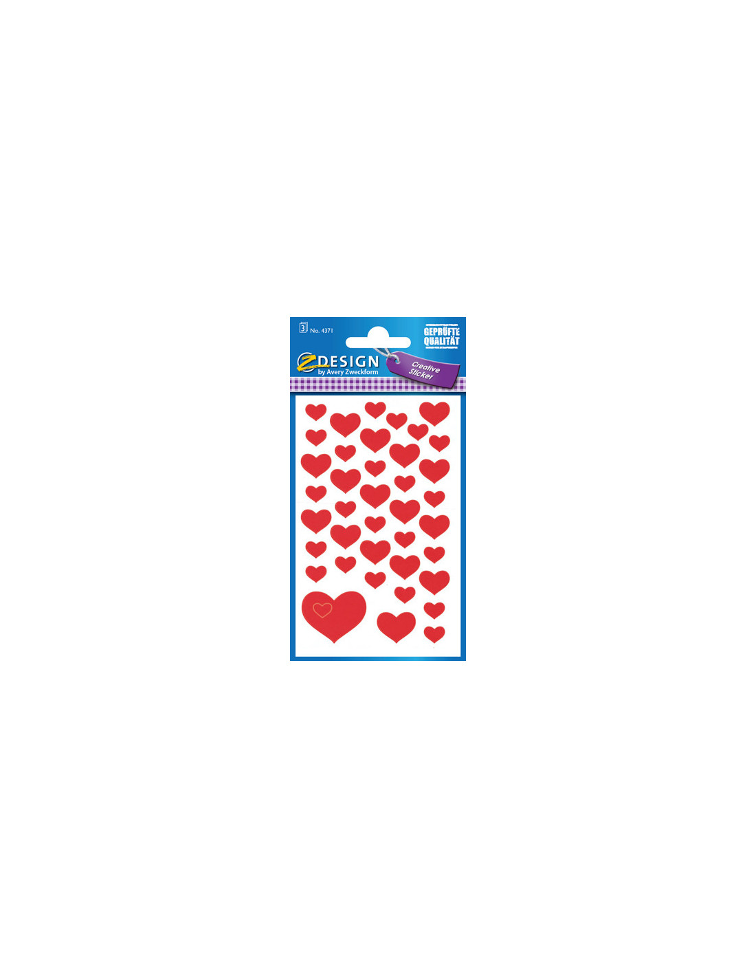 Avery 4371 Hjerter RØDE 3ark of 39 labels assorterede str.