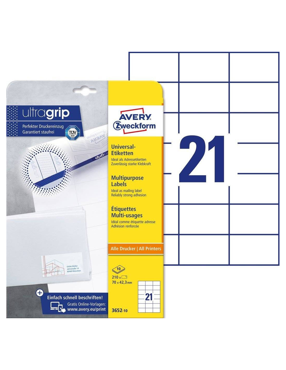 Universal etiketter der kan bruges i alle printere og kopimaskiner 10-arks prøvepakke til specialpris Garanteret jamfrit, til alle almindelige printere og kopimaskiner Problemfrit gennemløb i blæk og laserprinter Skarp klar udskrift uden sløring