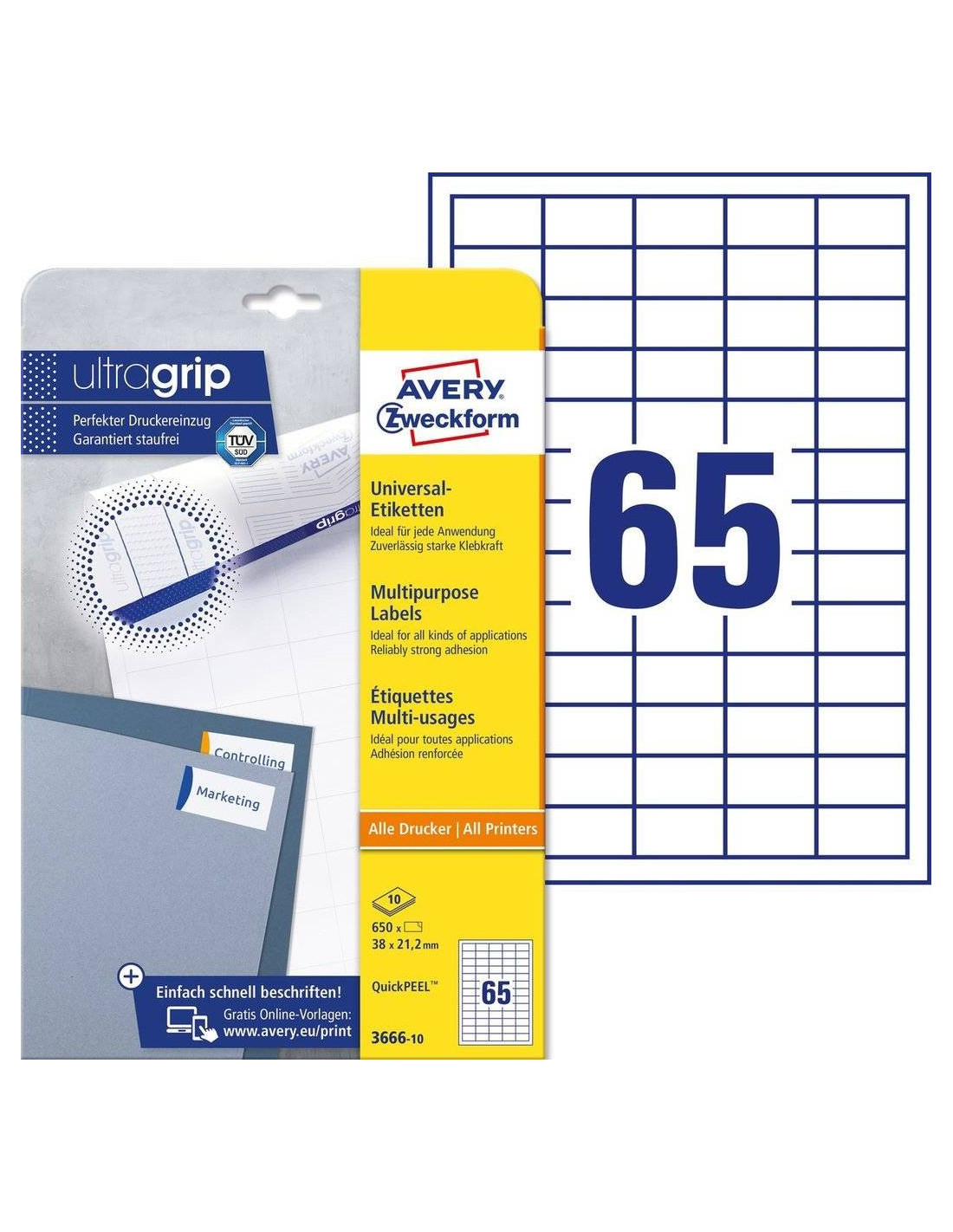 Quickpeel og Ultragrip Universal etiketter der kan bruges i alle printere og kopimaskiner