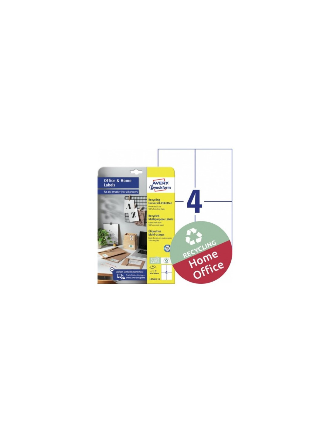 Hvis din arbejdsplads ønsker at gøre hvad den kan for at skåne miljøet så brug Avery LR3478-10 Universaletiketter af genbrugspapir med 1 etiketter/ark og 10 etiketter/pk.