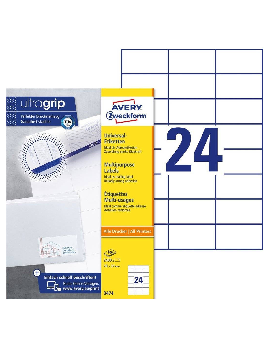 Universal etiketter, hvide, 70 x 37 mm - 3474