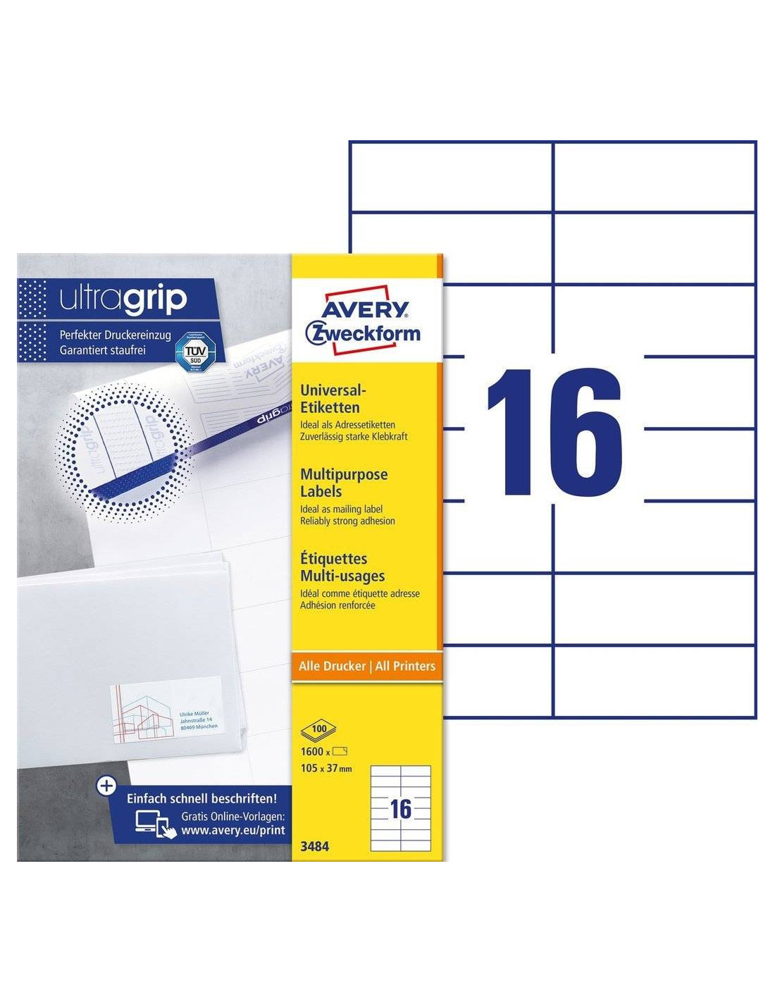 Universal etiketter, hvide, 105 x 37 mm - 3484